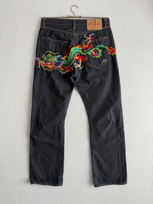 Ed Hardy Dragon Embroidered Blue Denim Jeans