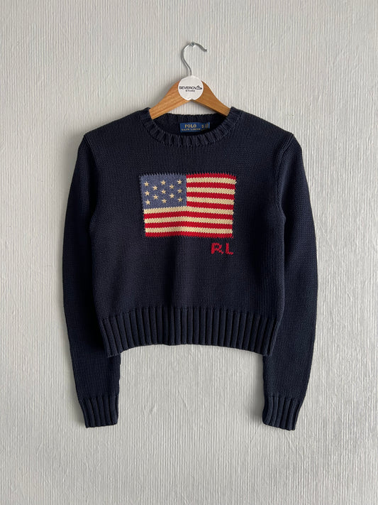 Polo Ralph Lauren American Flag Heavy Knit Navy Cotton Sweater