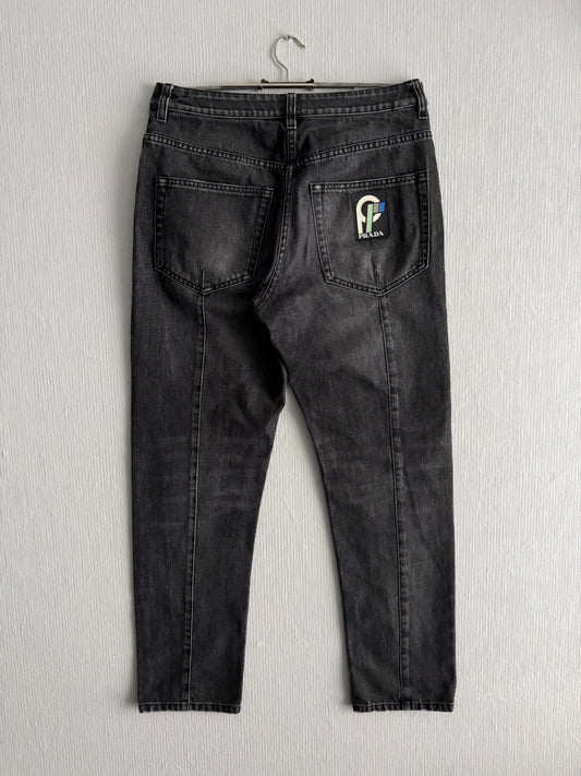Prada Back Pocket Logo Grey Denim Pants Jeans