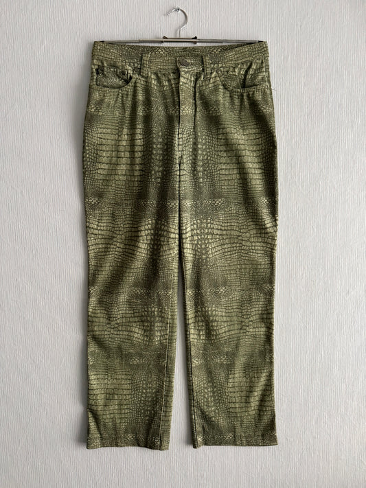 Roberto Cavalli Jeans AW2001 Crocodile Effect Khaki Mens Pants