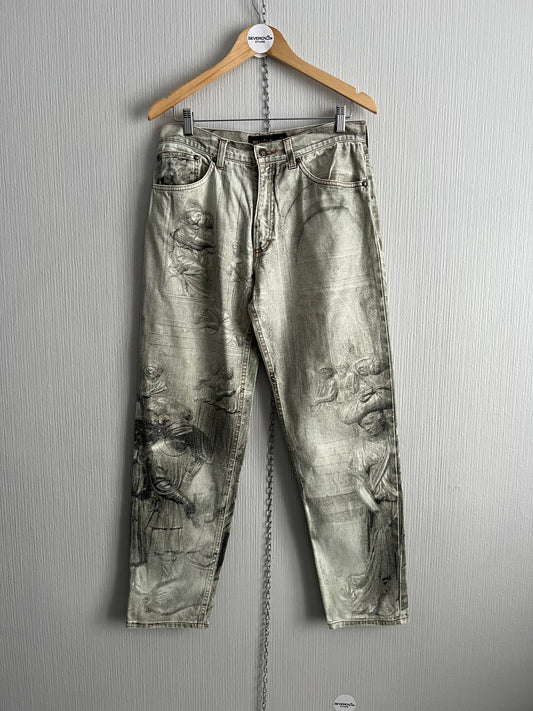 Roberto Cavalli AW1995 Medieval Art Renaissance Print Pants