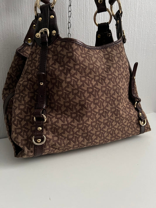 DKNY Vintage Monogram Canvas Handbag with Leather Trim