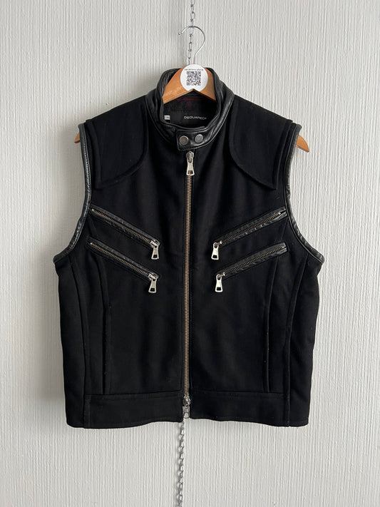 Dsquared2 Archive Black Cashmere Unisex Vest with Leather Trim