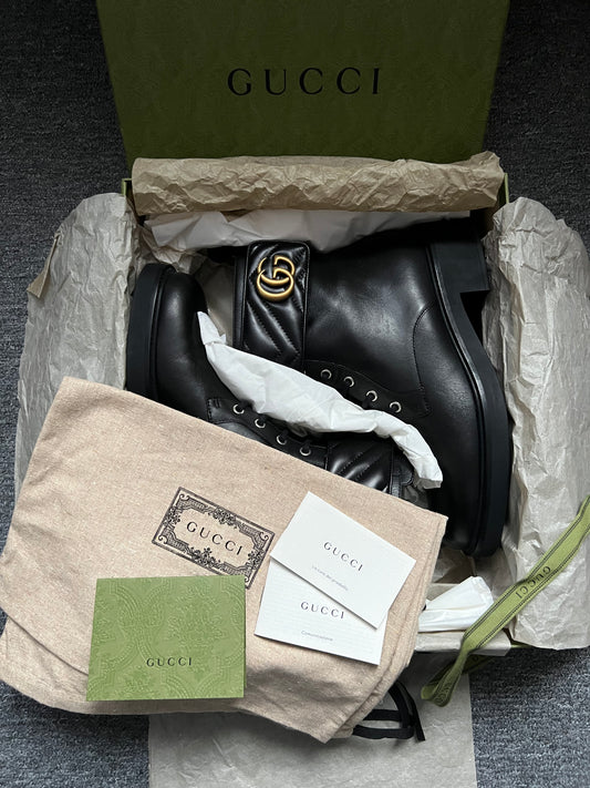 Gucci GG Marmont Double Interlocking G Buckle Leather Black Belt