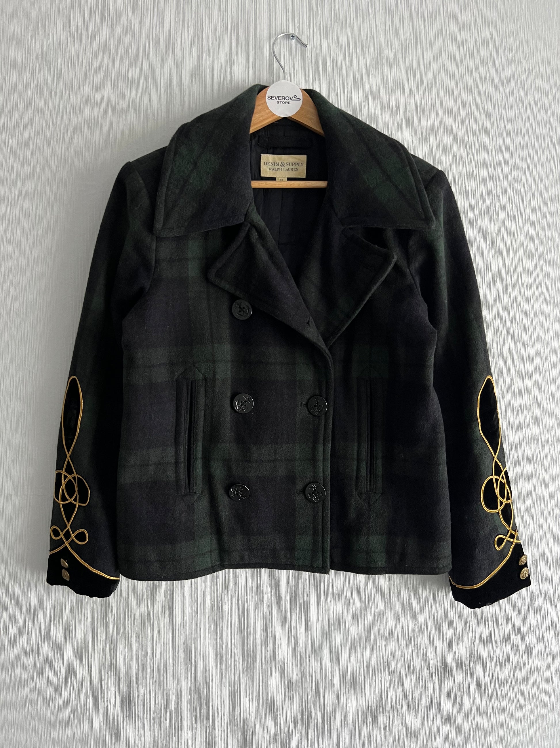 191 Ralph Lauren Denim & Supply Tartan Plaid Wool blend Pea Coat
