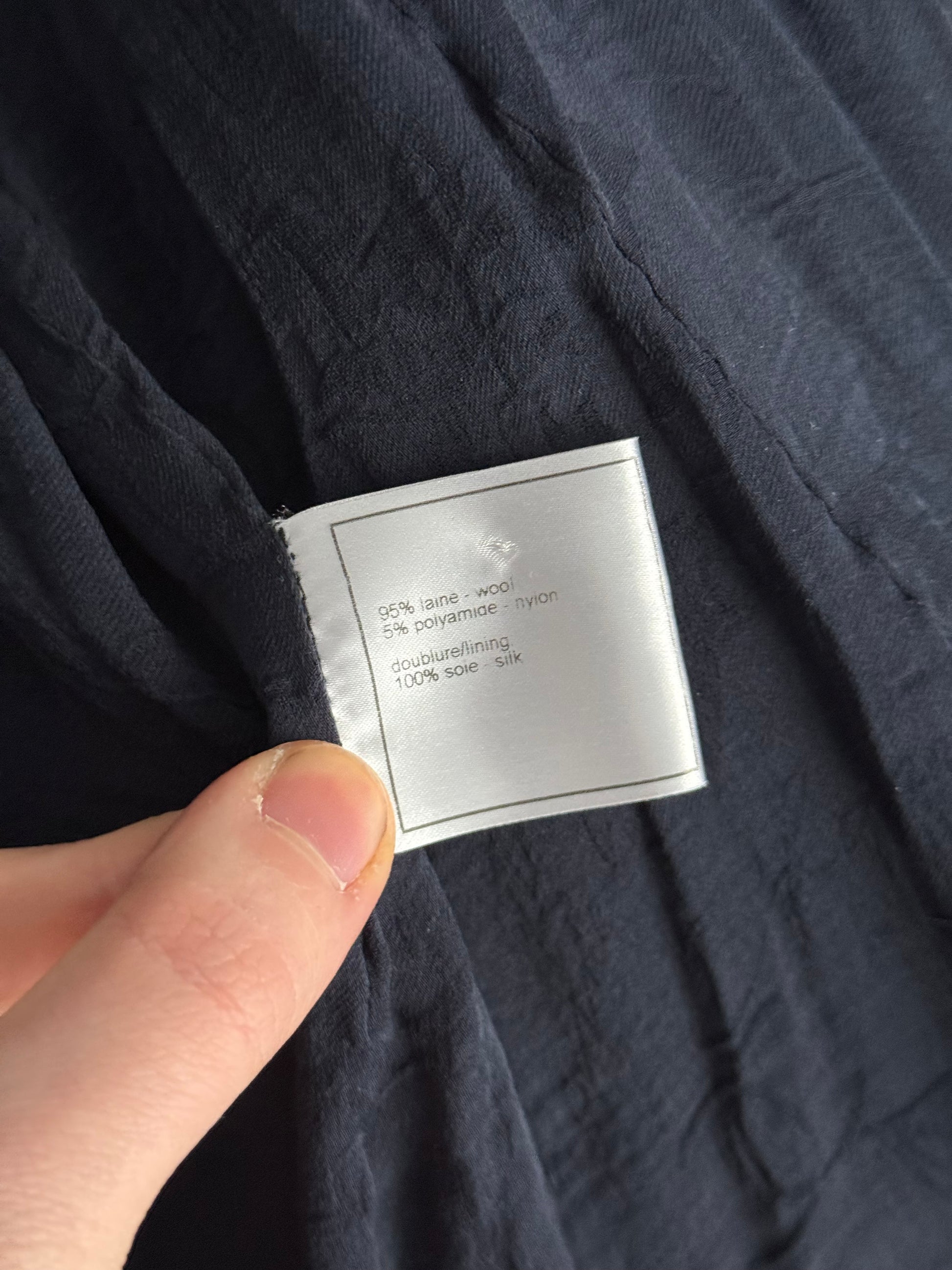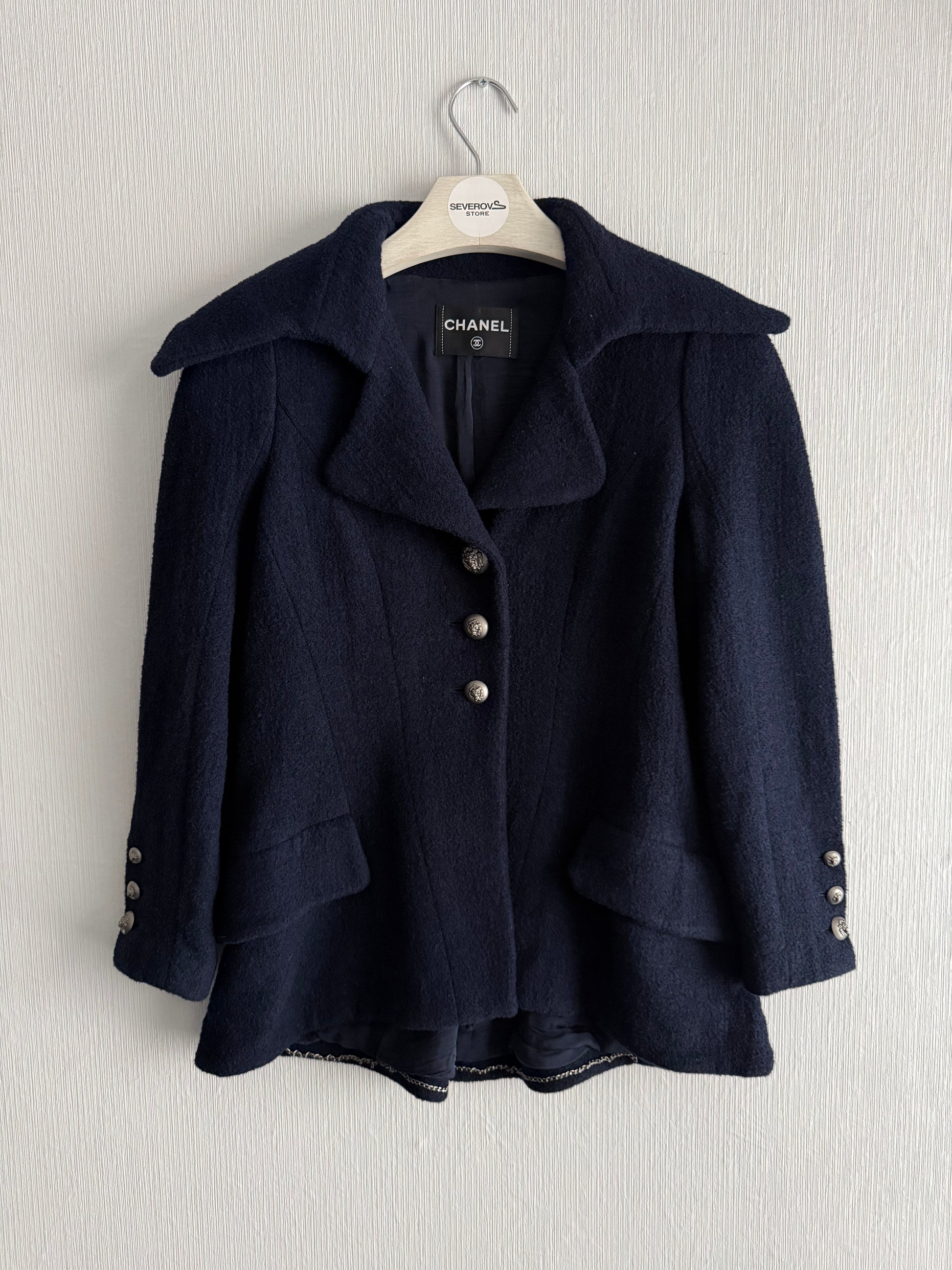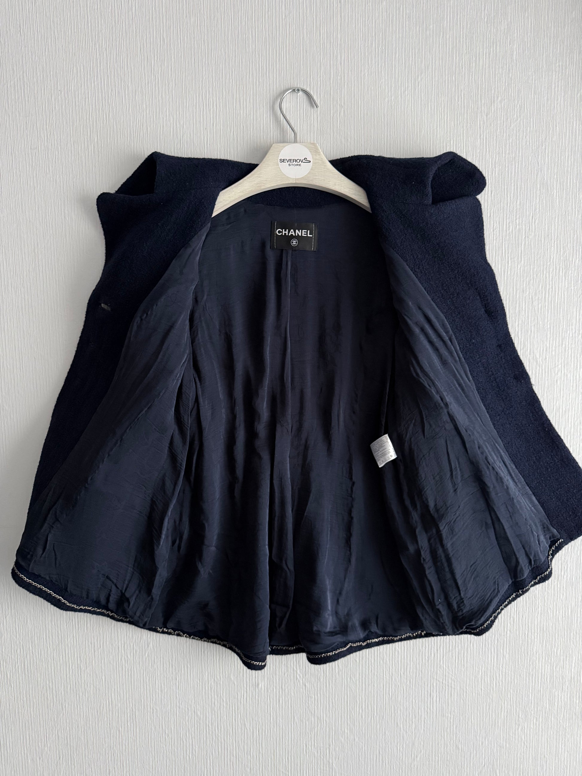 Chanel Wool Nylon Lion COCO Mark Button Jacket Coat Blouson Blazer Navy Blue