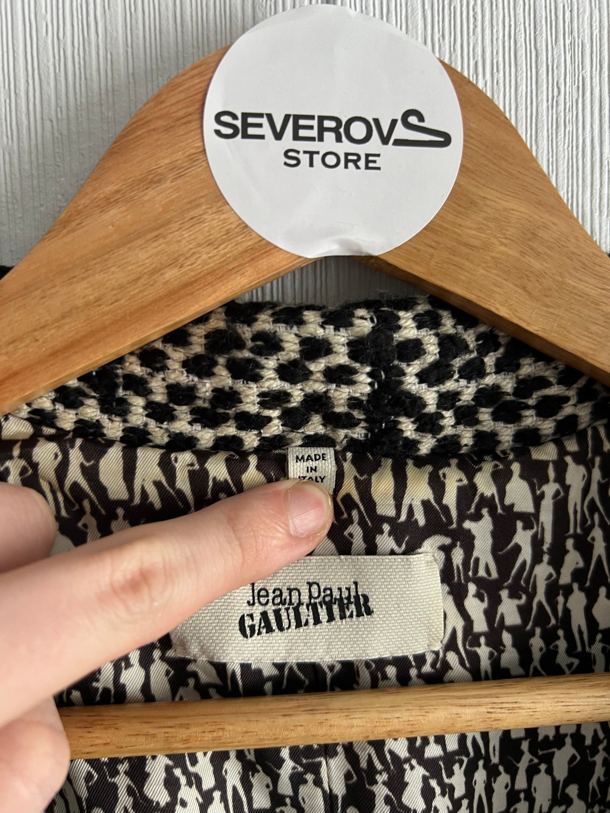 Standout piece from Jean Paul Gaultiers Fall/Winter 2013 collection. This collection was known for its bold designs and unique cultural references, and this coat is no exception. The coat was notably worn by Rihanna, which added to its popularity and iconic status. Styled by Mel Ottenberg, photographed by Inez & Vinoodh for GQs 25th anniversary edition by Damien Hirst. This item is so rare, only a few were made.