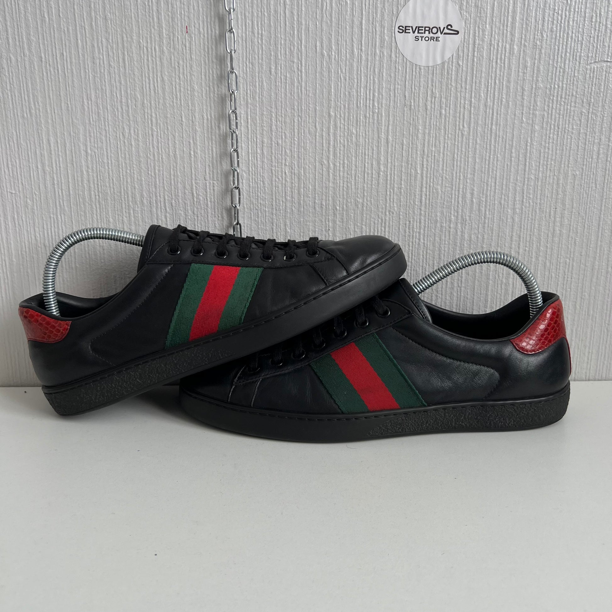 Gucci Ace Leather Black Mens Shoes