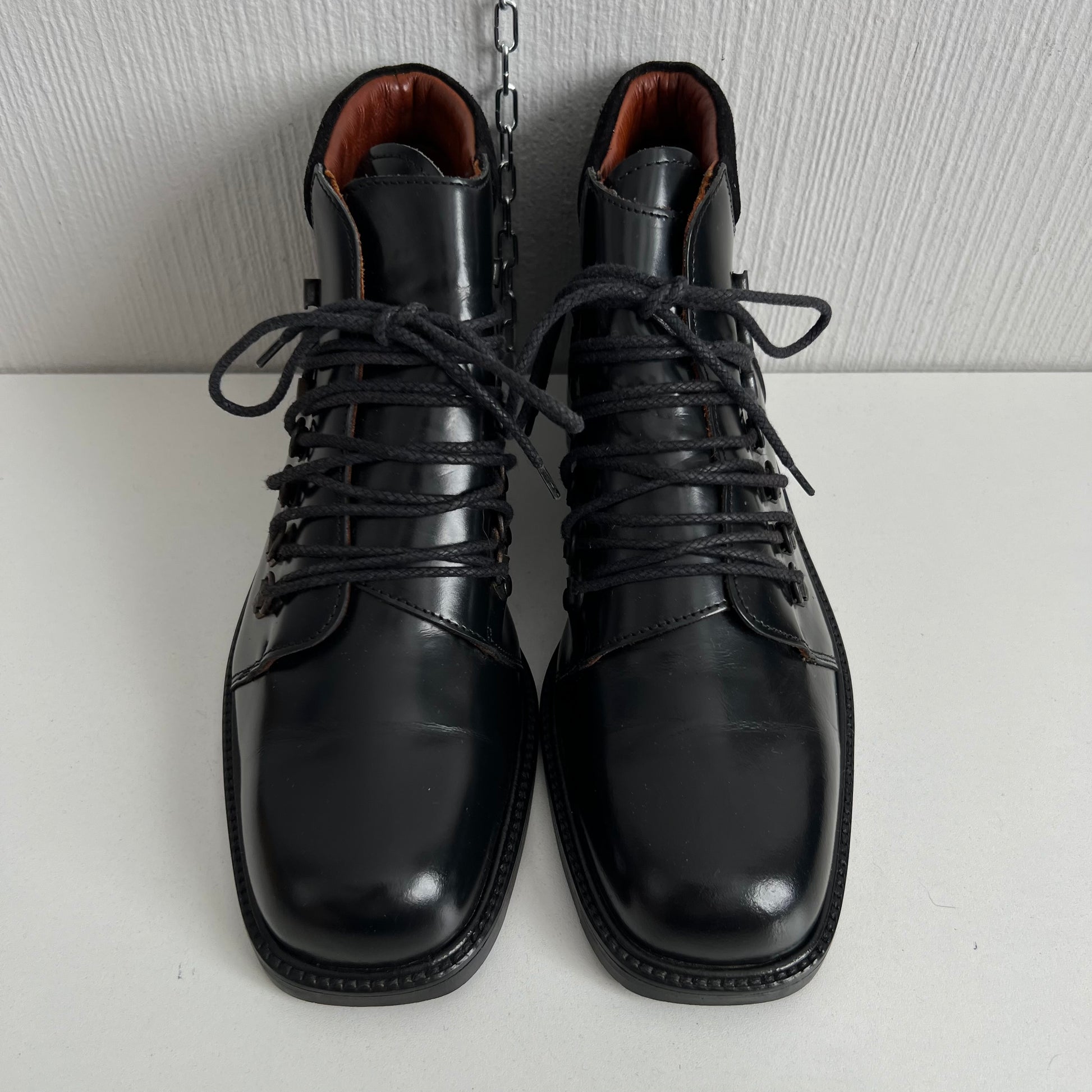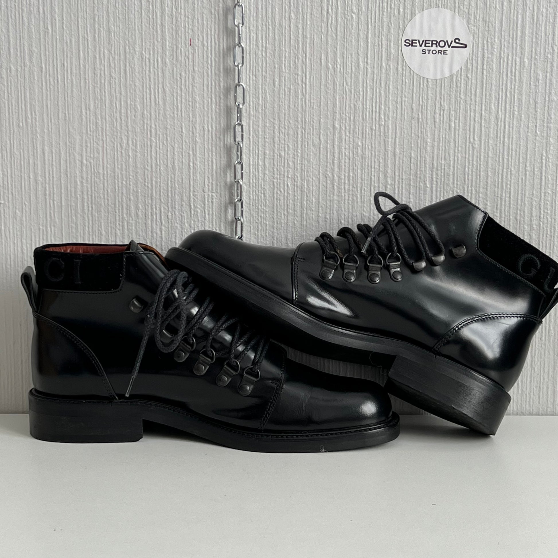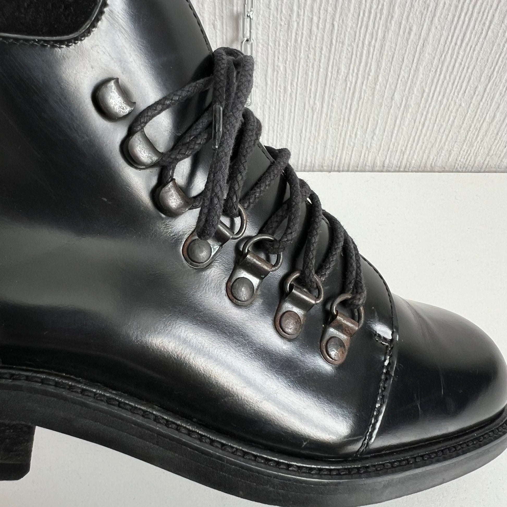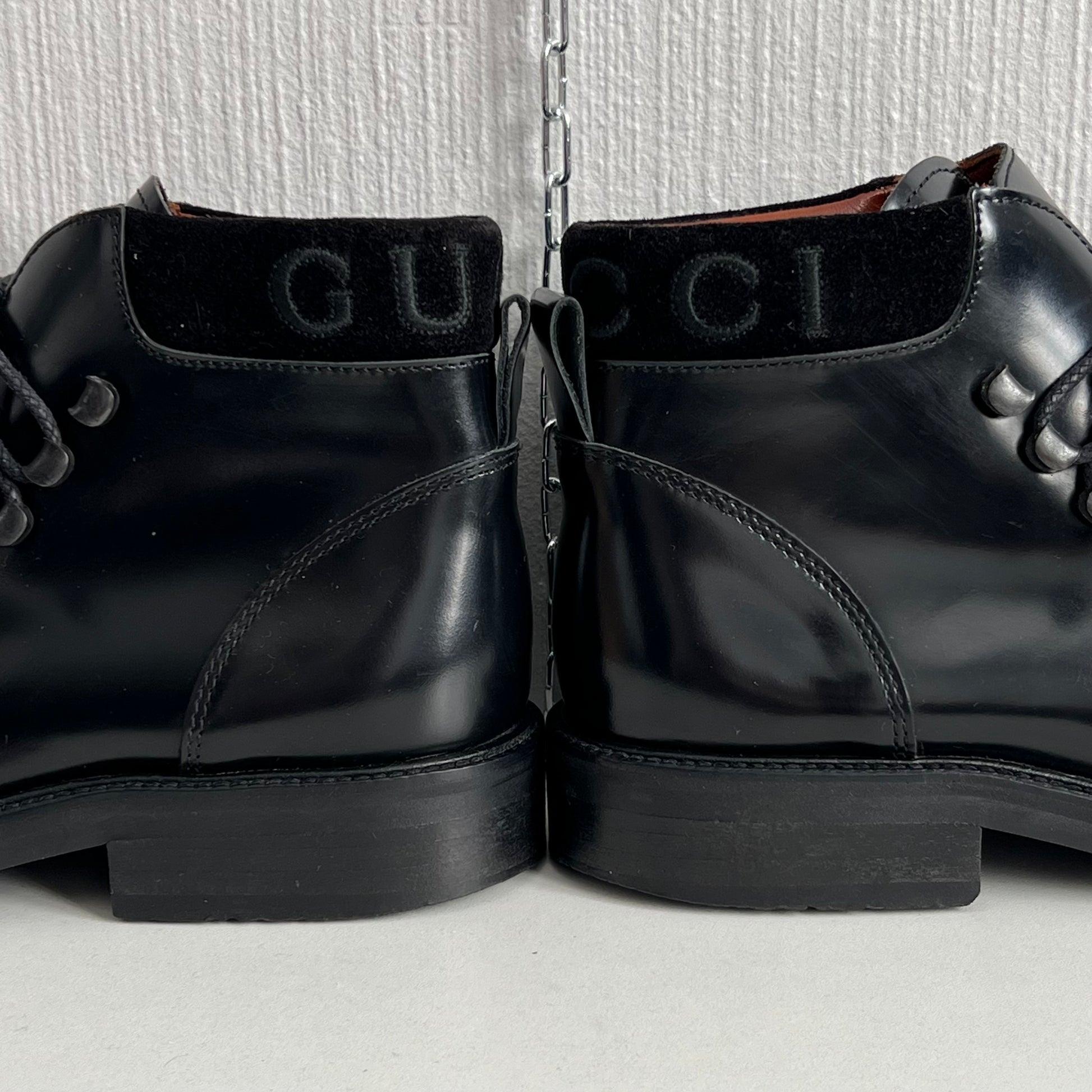 Gucci Black Leather Combat Lace Up Ankle Women's Boots