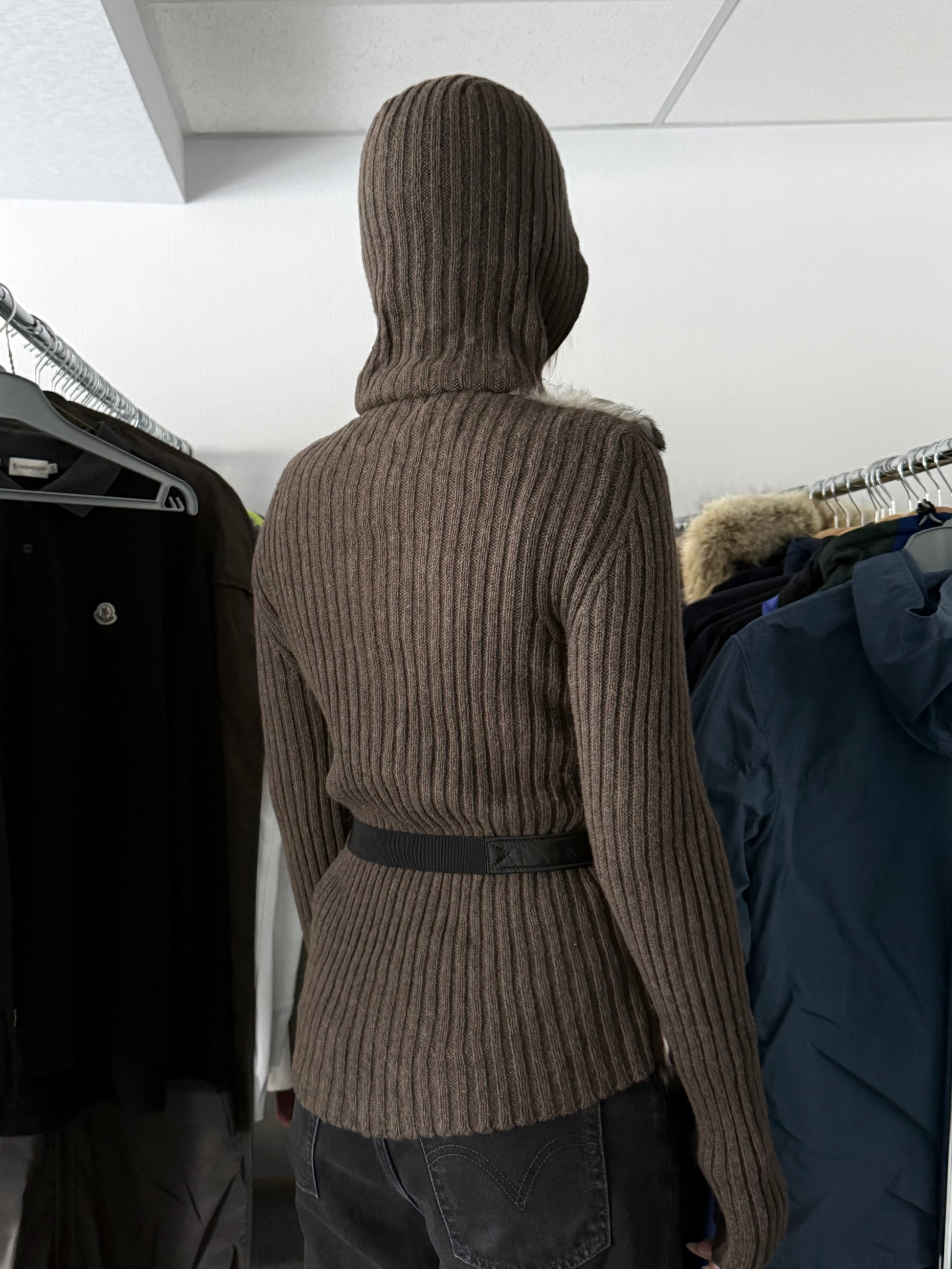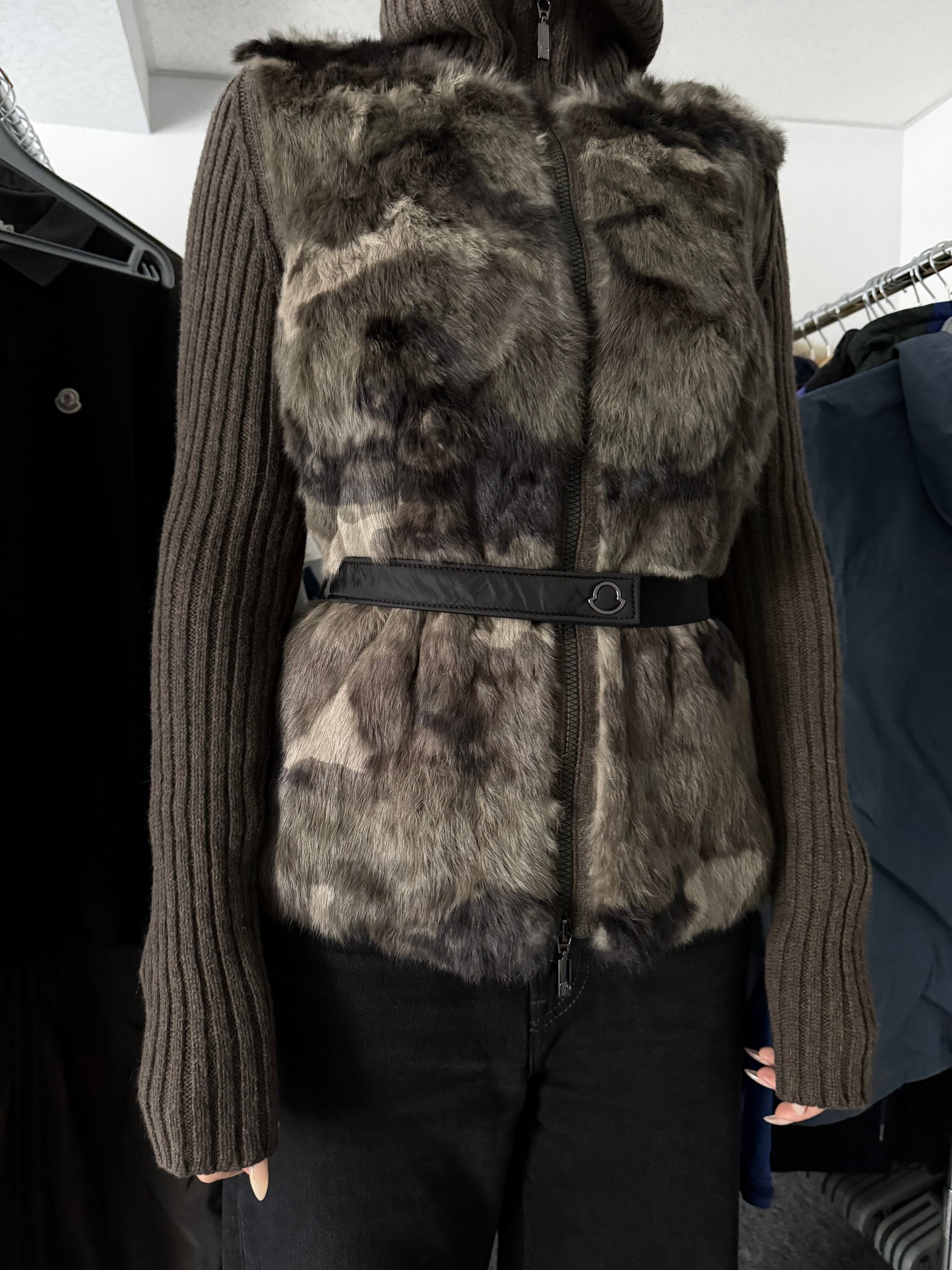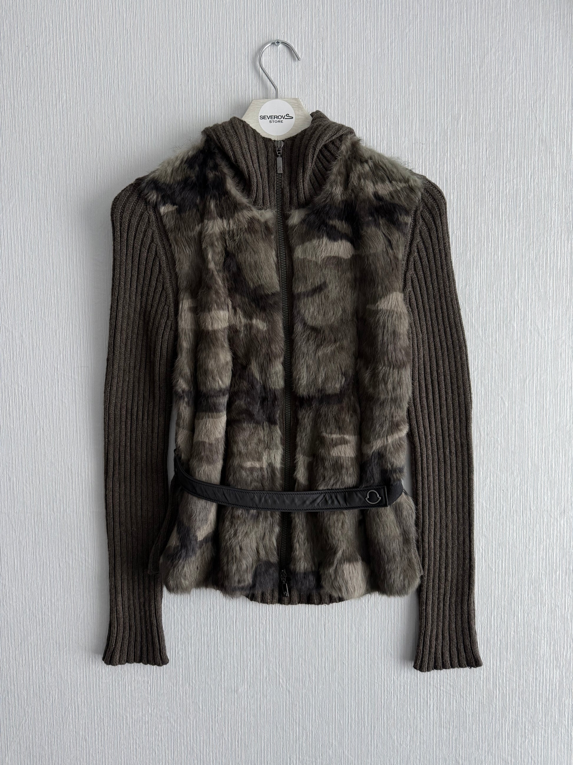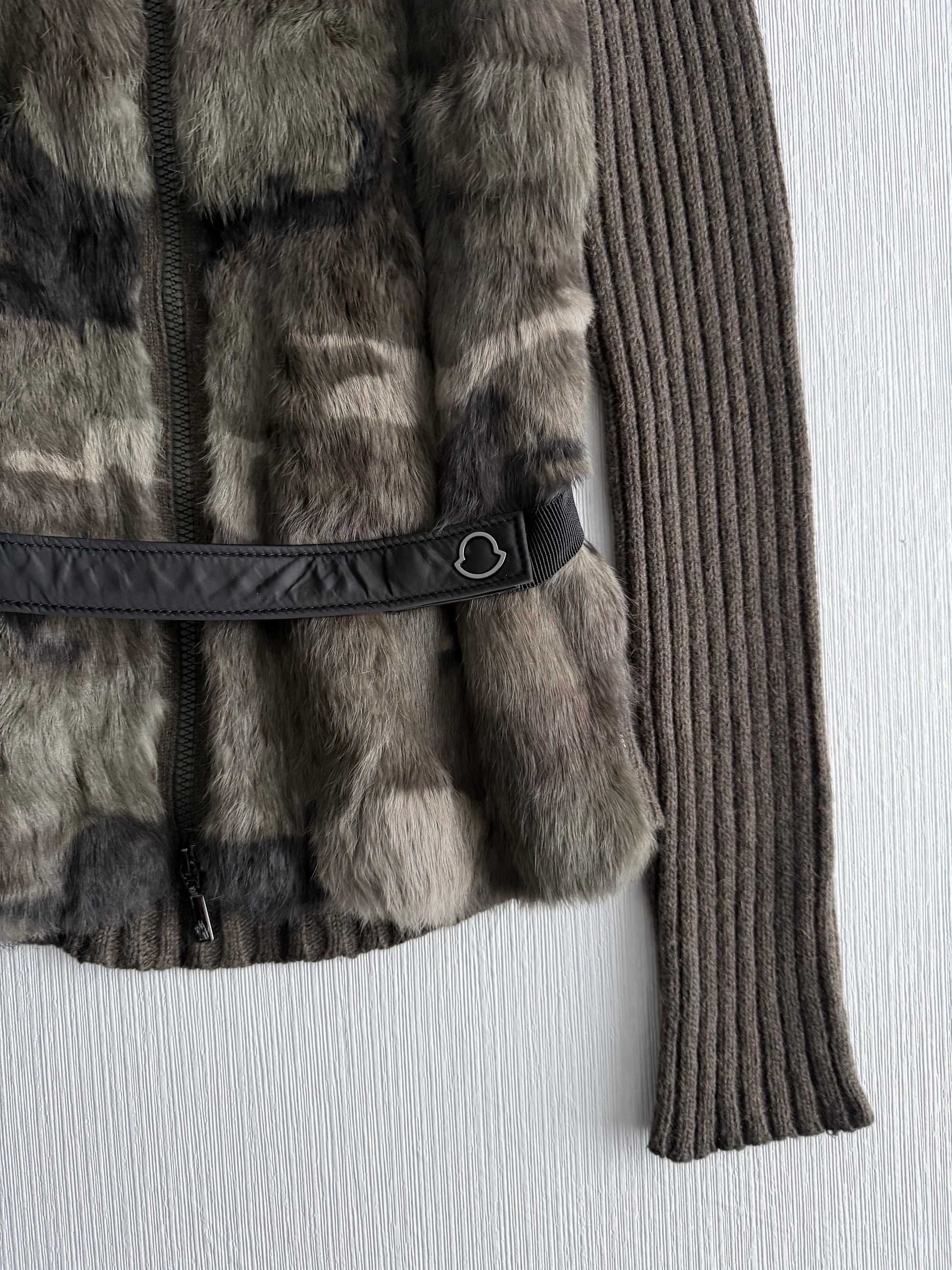 Moncler FW18 Rabbit Fur Camo Zip Up Cardigan Sweater