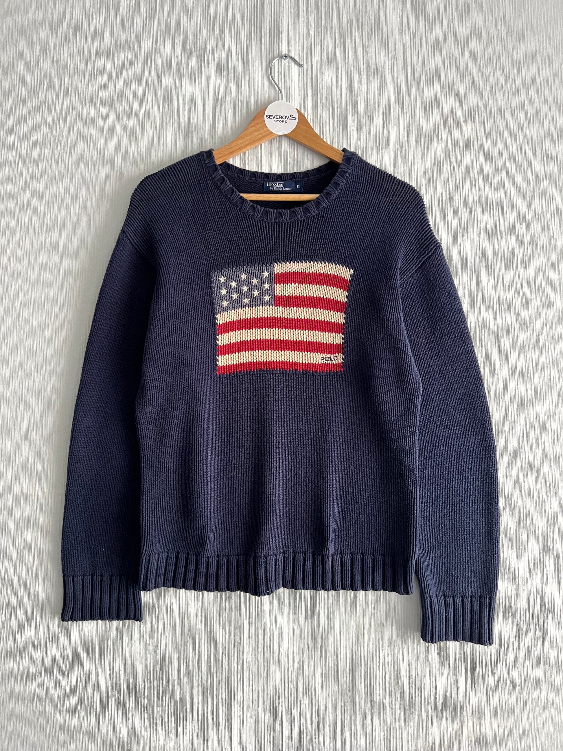 Polo Ralph Lauren American Flag Heavy Knit Navy Cotton Womens Sweater