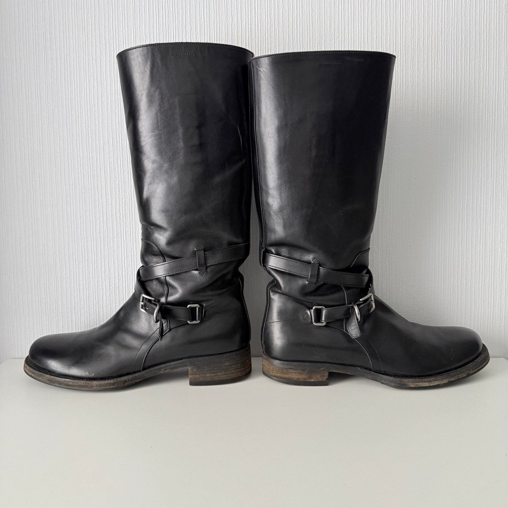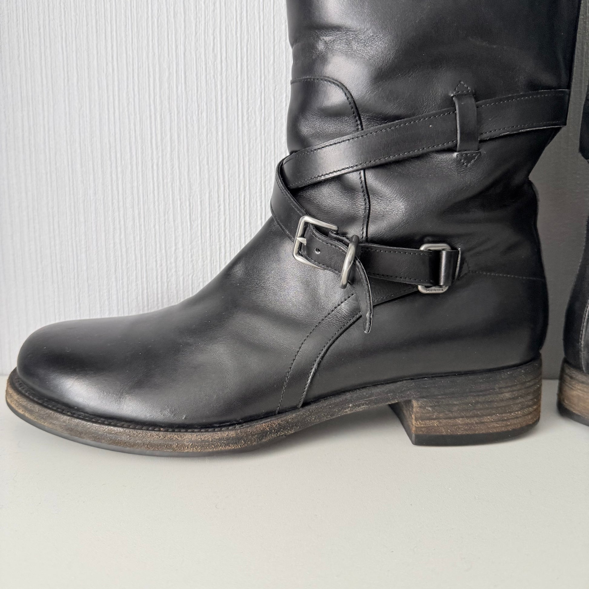 Prada Black Leather Mens Riding Boots