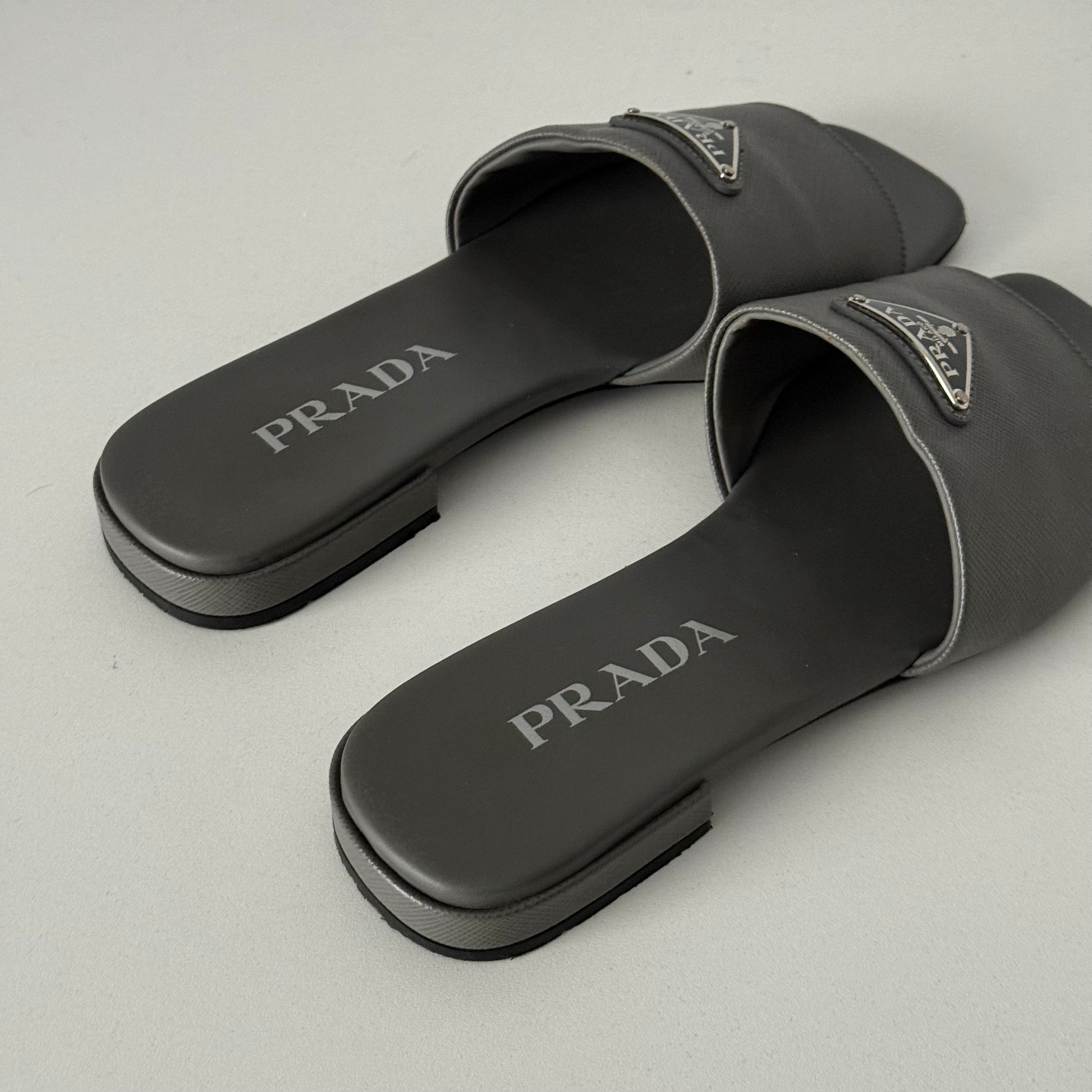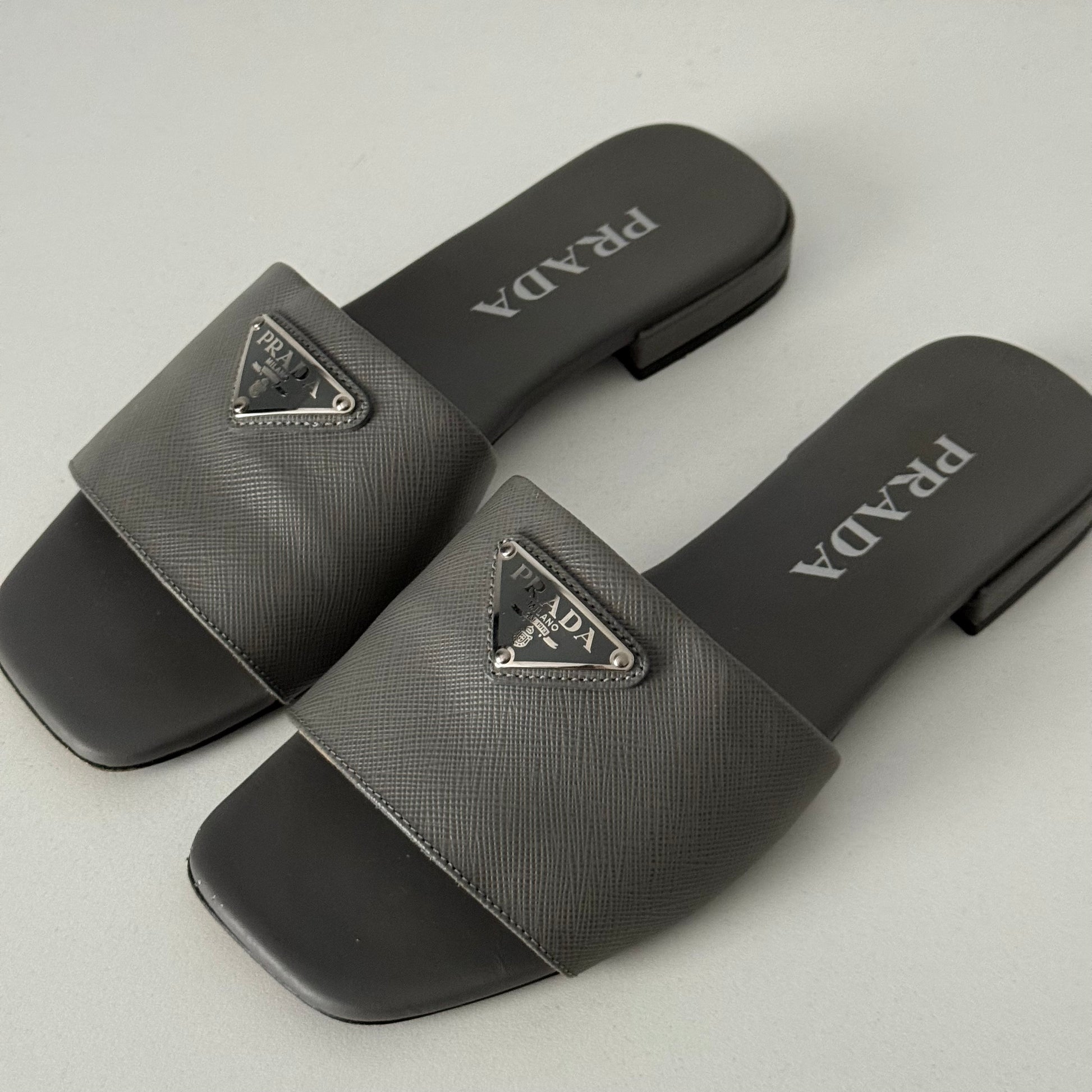 Prada Saffiano Leather Triangle Logo Sandals