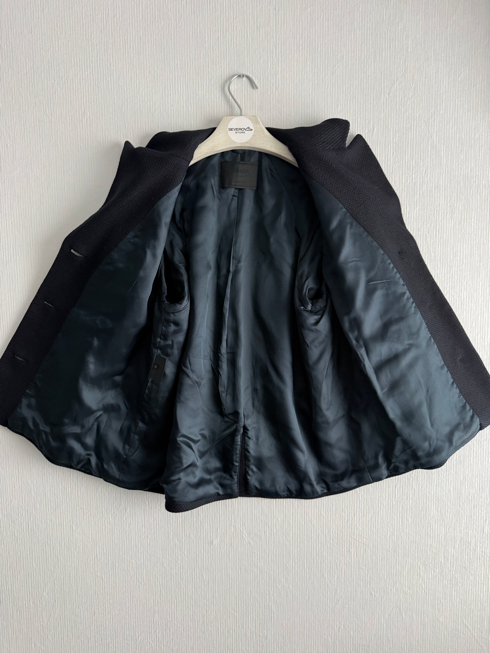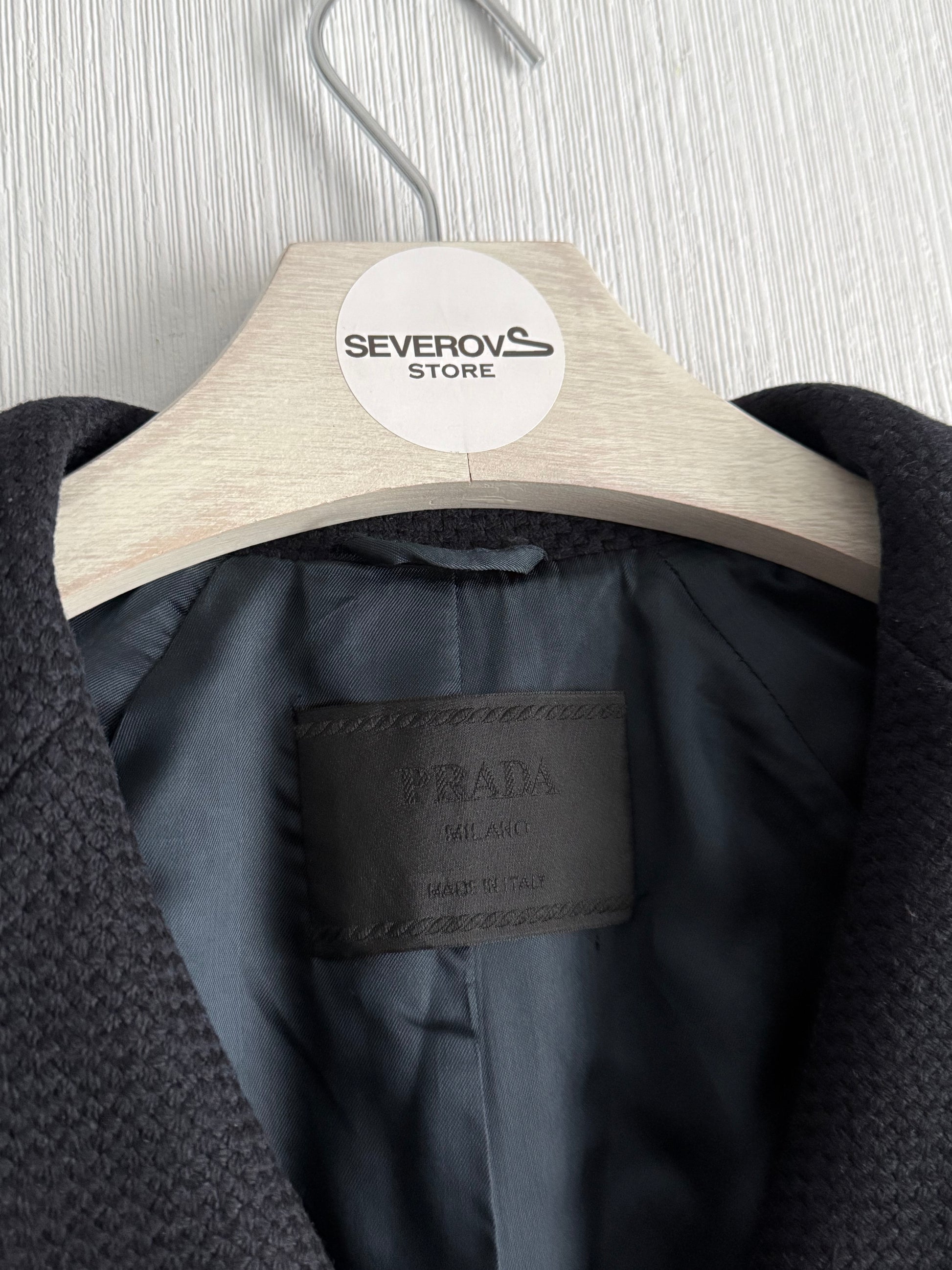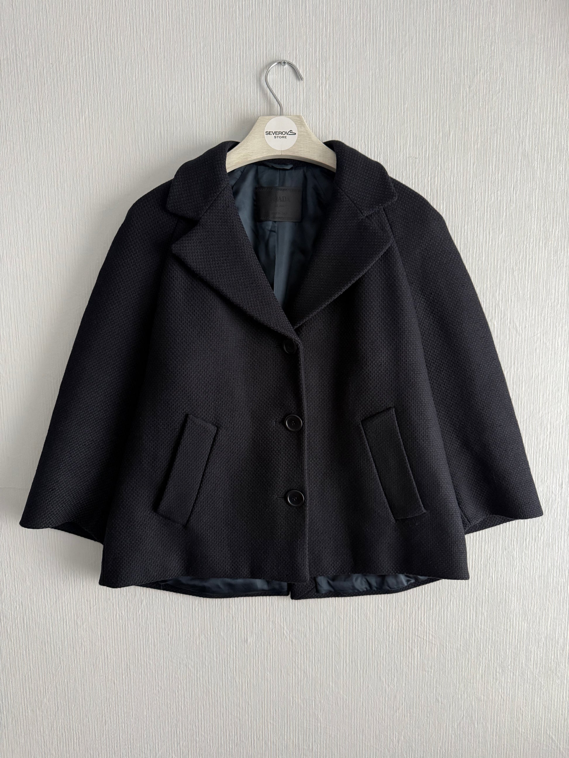 Prada Wool Woven Womens Black Pea Coat